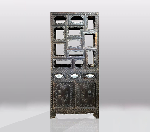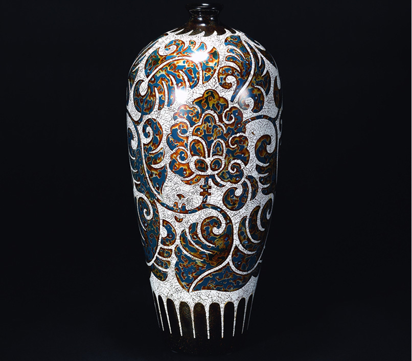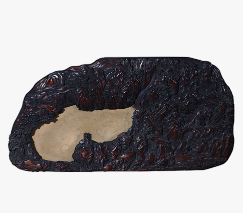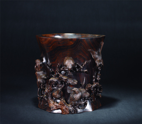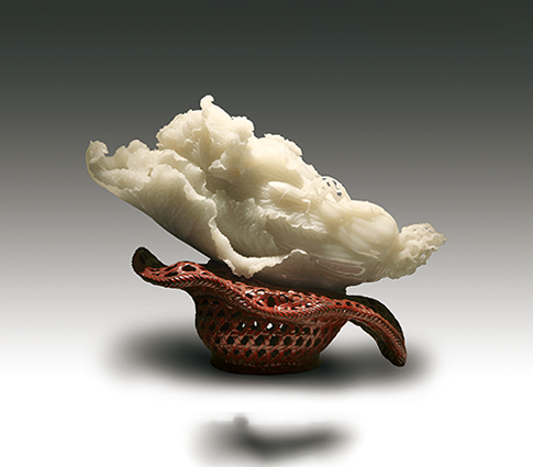 “龍鳳呈祥”選用檀香木和紫檀木精雕而成。外圍支撐選用檀香木,中部花球和外圍花紋形成的環(huán)形部分由紫檀所雕而成。花球完全透雕,可自由轉動。周身采用拉花工藝,精致細膩,遠看極具金屬質感。整件作品造型優(yōu)美,洋溢著古典的神韻。