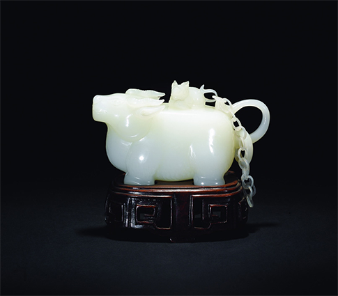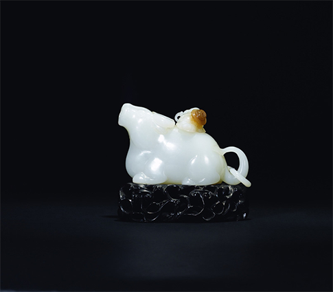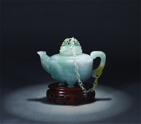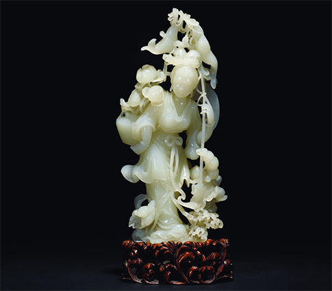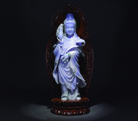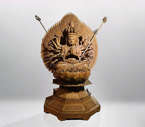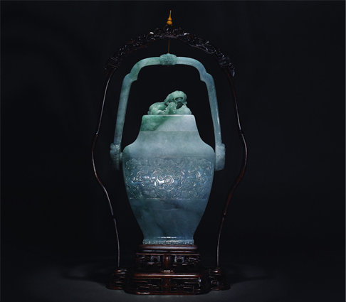 兩件作品均選用檀香木、紫檀木、翡翠等制作。檀香木和紫檀木皆為珍稀木材,檀香木獨具香味,紫檀木深沉穩(wěn)重,兩者高貴古雅,皆為木中王者。