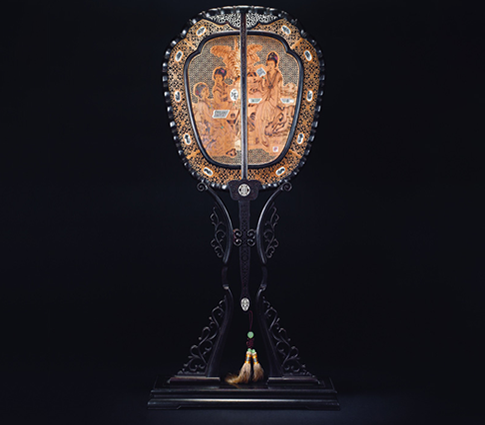 1999年,江蘇省人民政府為慶賀澳門回歸,先后制作兩把宮扇,名為“花好月圓”和“龍鳳呈祥”。“花好月圓”作為澳門回歸江蘇省賀禮贈送給澳門特區(qū)政府,現(xiàn)展于澳門文化中心展覽館;“龍鳳呈祥”作為館藏精品,現(xiàn)藏于省工藝美術館。